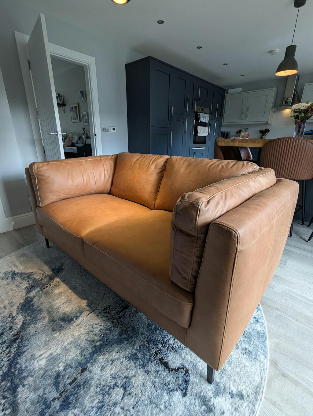 We're super pleased with our Oli Plus (small) sofa! We ordered the swatches, which arrived very quickly, and decided upon the beatufil Marfa Pluto leather.