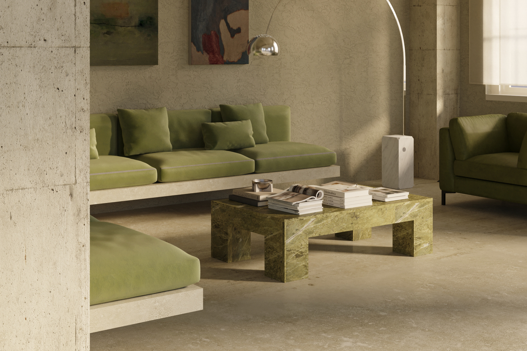 The choice of earthy and emotionally intelligent personalities. A green-toned jewel, Alga Green’s complexity of colour and rivers of vein deepen and shimmer when under light. Observe its soulful presence trickle elegantly, grounding your space with organic movement exuding life.