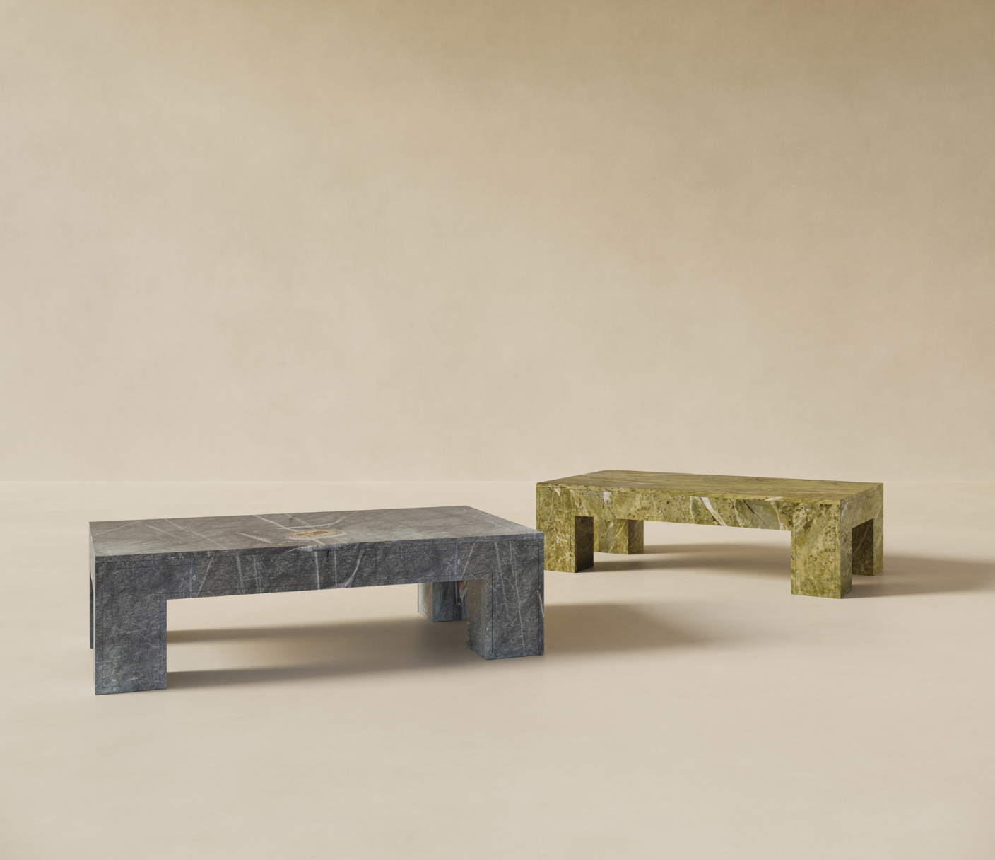 Chunky Coffee Table in Atlantic Stone and Alga Green Marble (Digital Design)