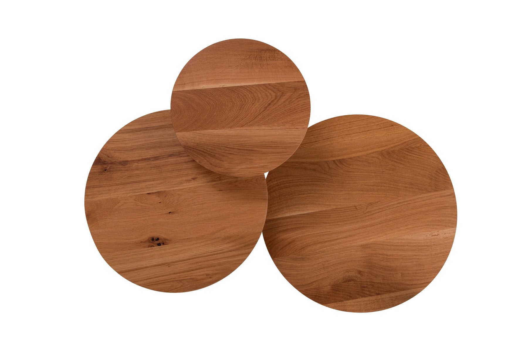 Flo nest tables are for sharing. Each table is completely unique, bound by the same stunning wood grain and art practice of woodturning by our inhouse artisans. Enjoy these three amigo characters as they interchange and interact within your space as guests come, go, and return once again. Choose how to stack and style them to meet each moment.
