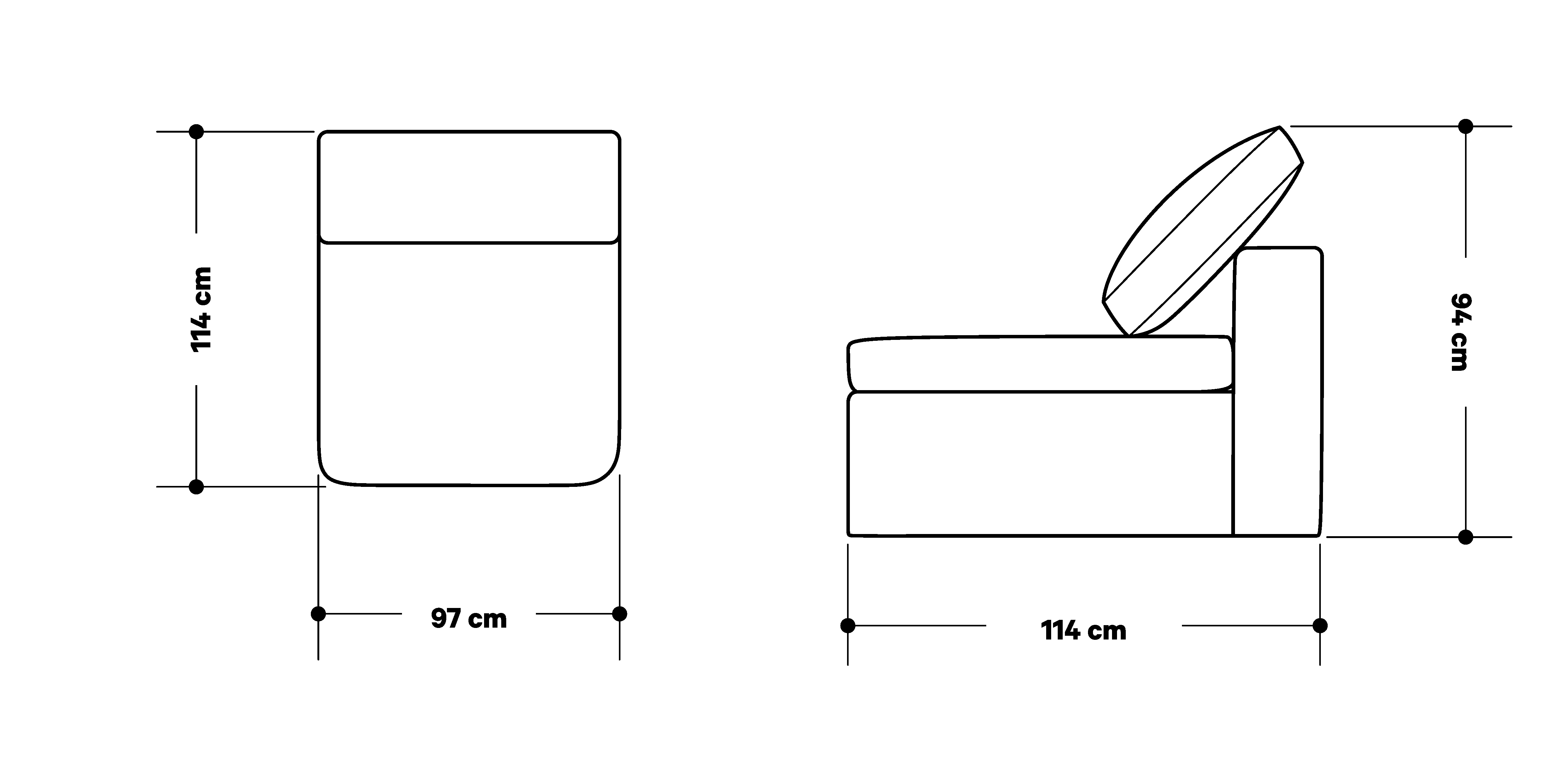- Fixed soft foam back and pillows padded with ethically sourced feathers.