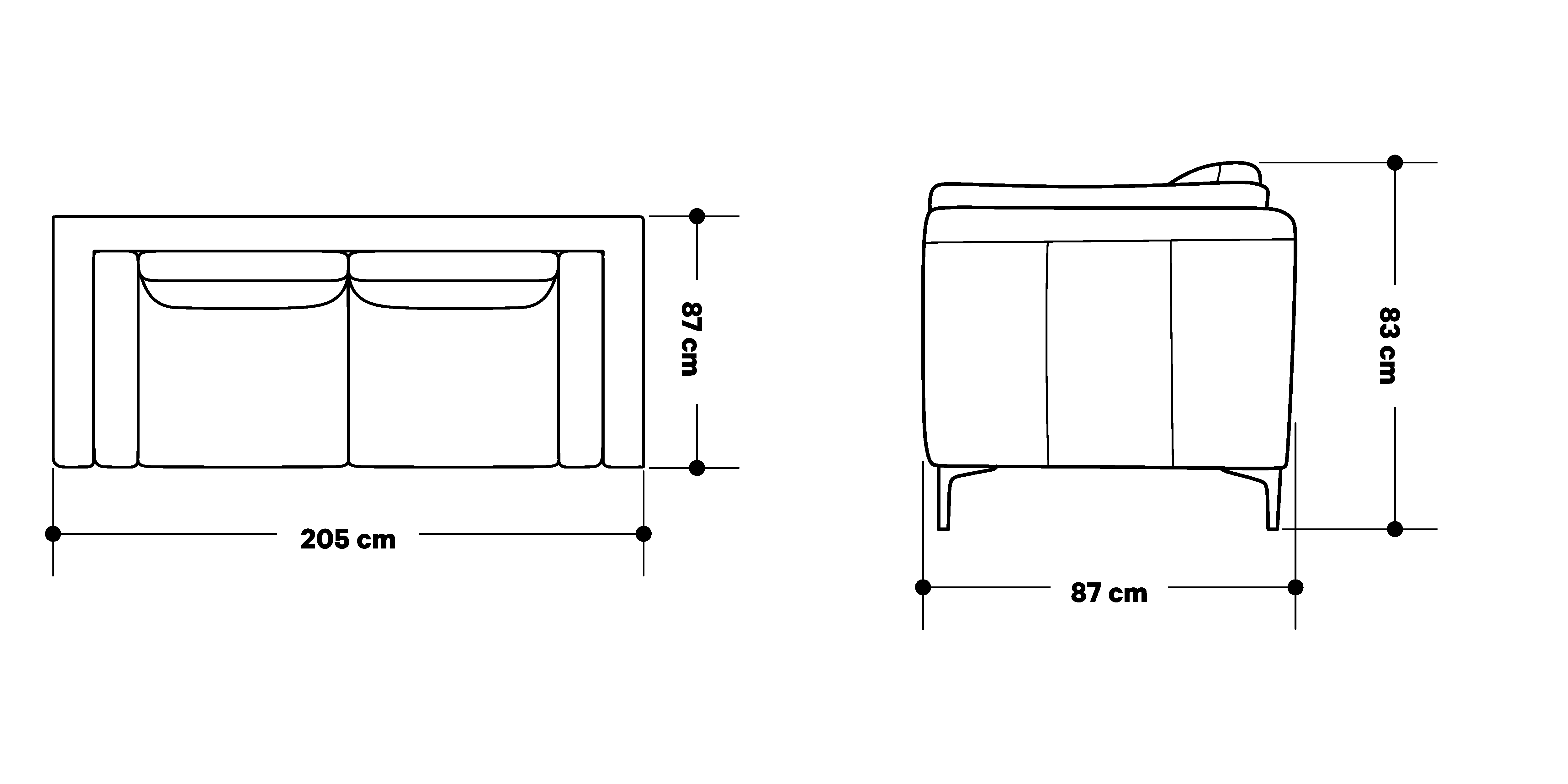 - Fixed back cushions with soft and supporting fibre padding.