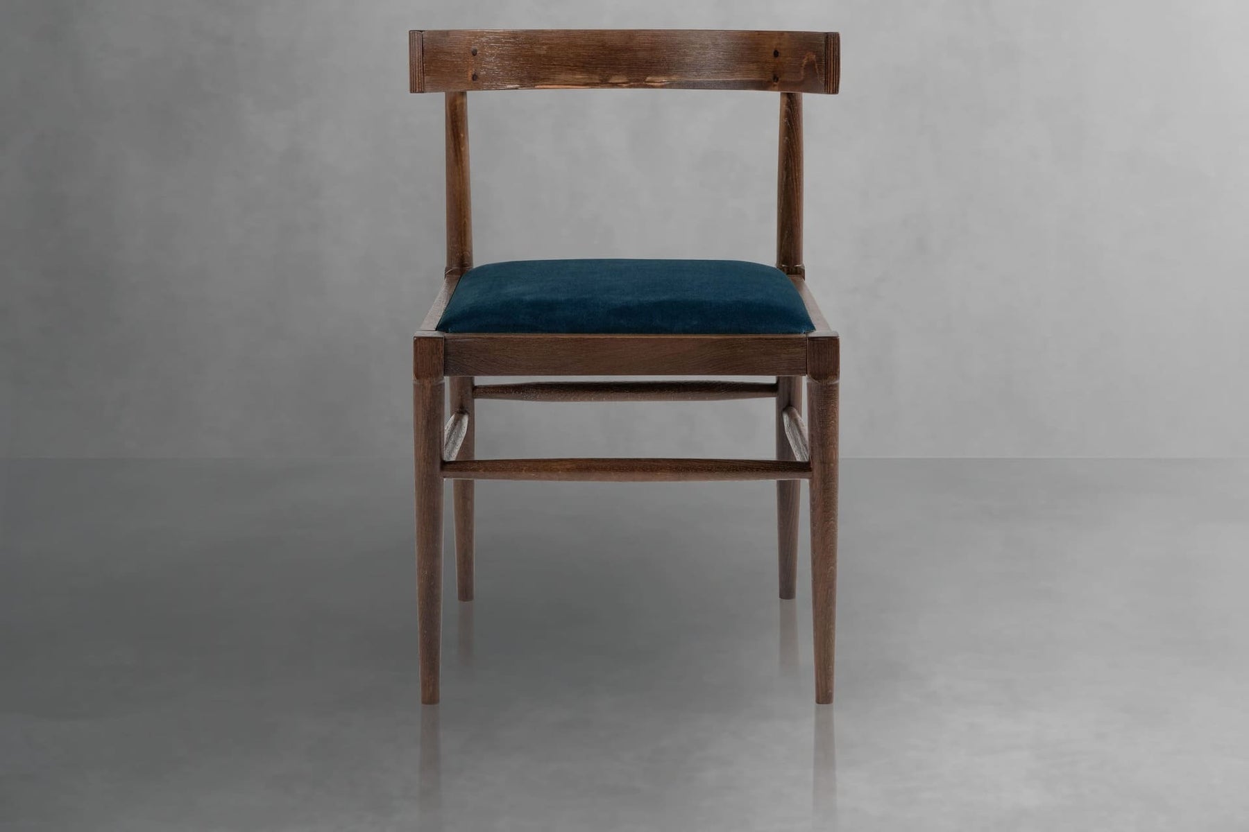 Solid beech and smooth velvet.