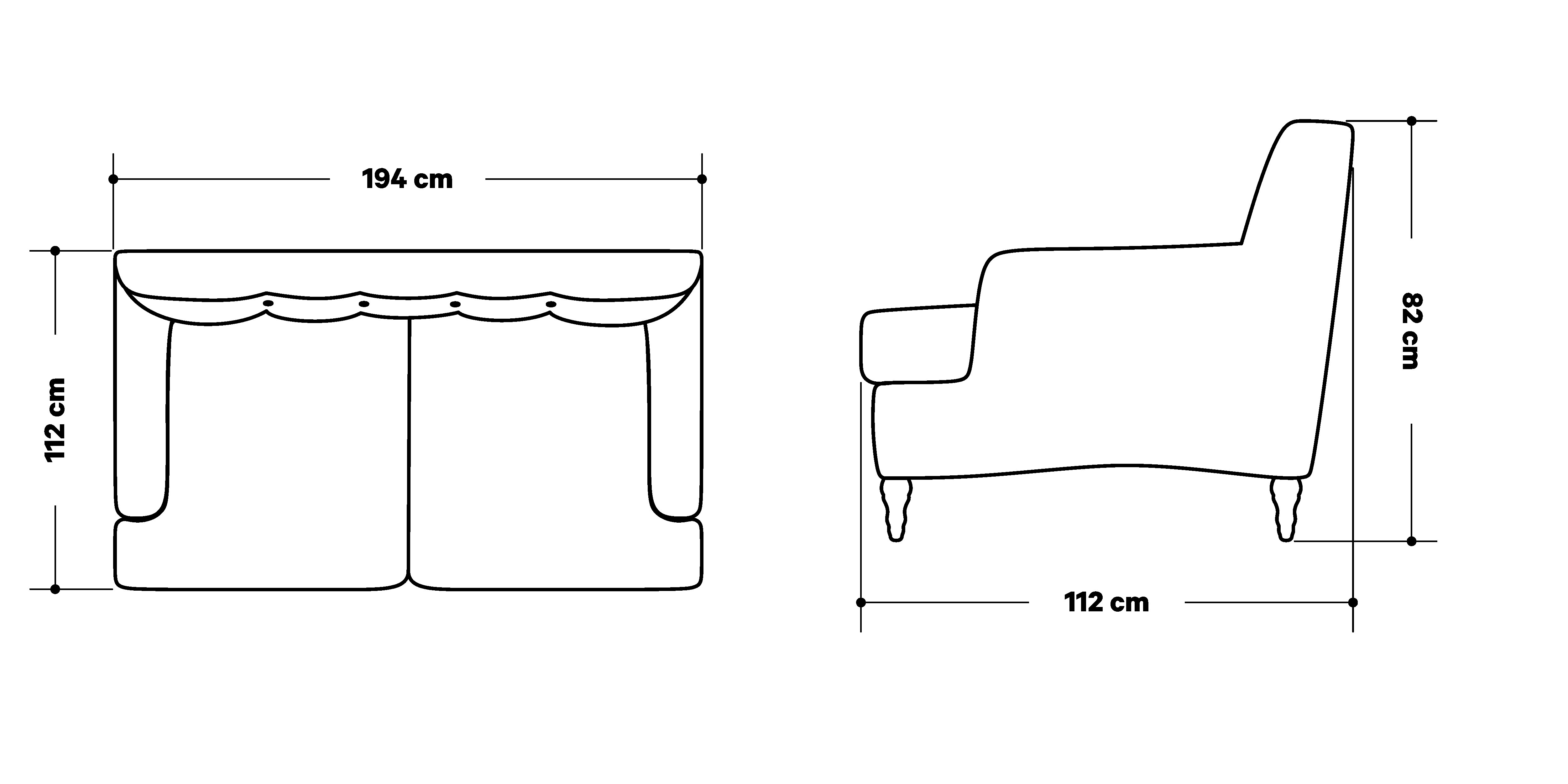 - Fixed seat cushions with pocket coil springs and padded with ethically sourced feathers.