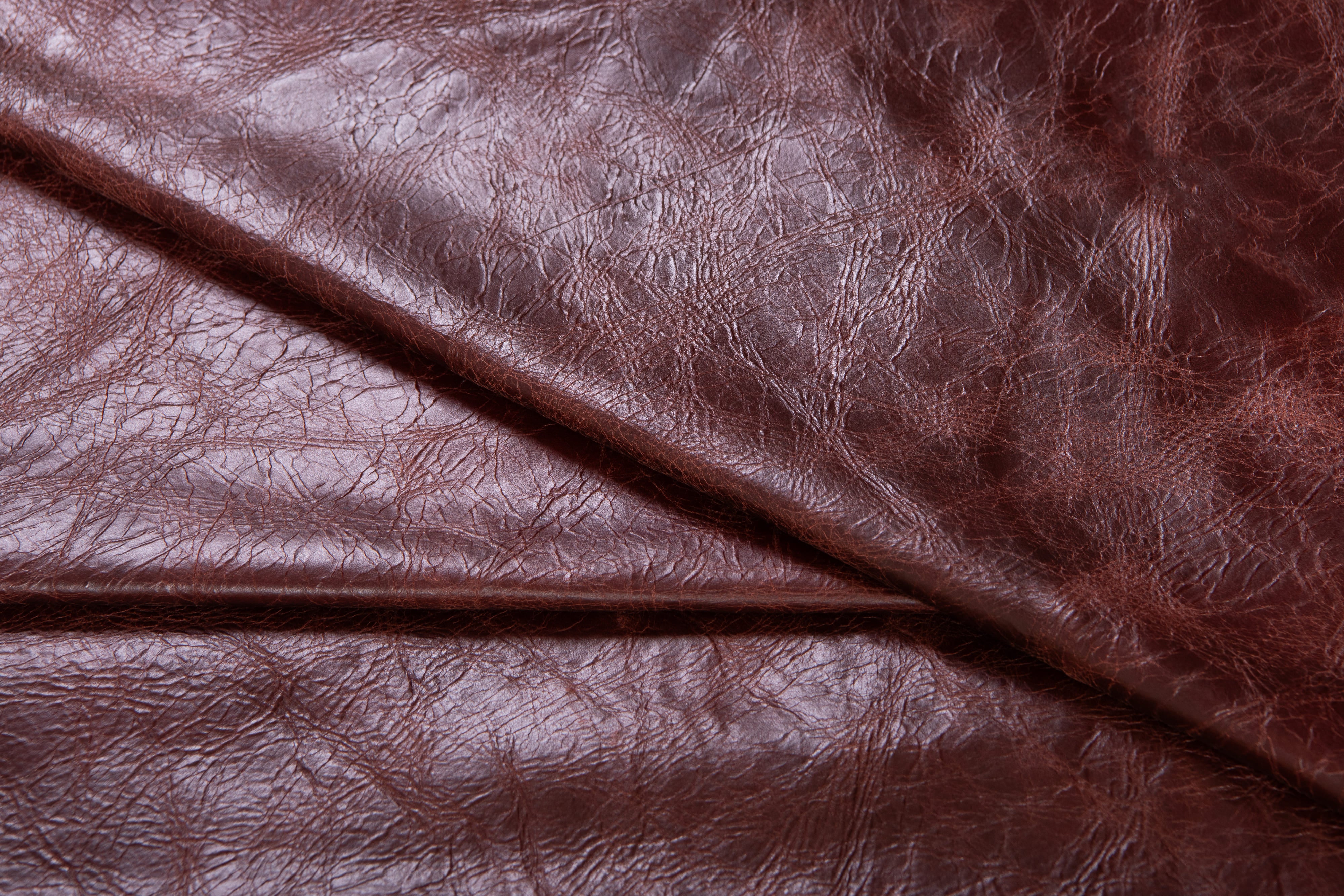 A soft, waxy aniline leather with vintage-style wild cracking effect and slight shine.
