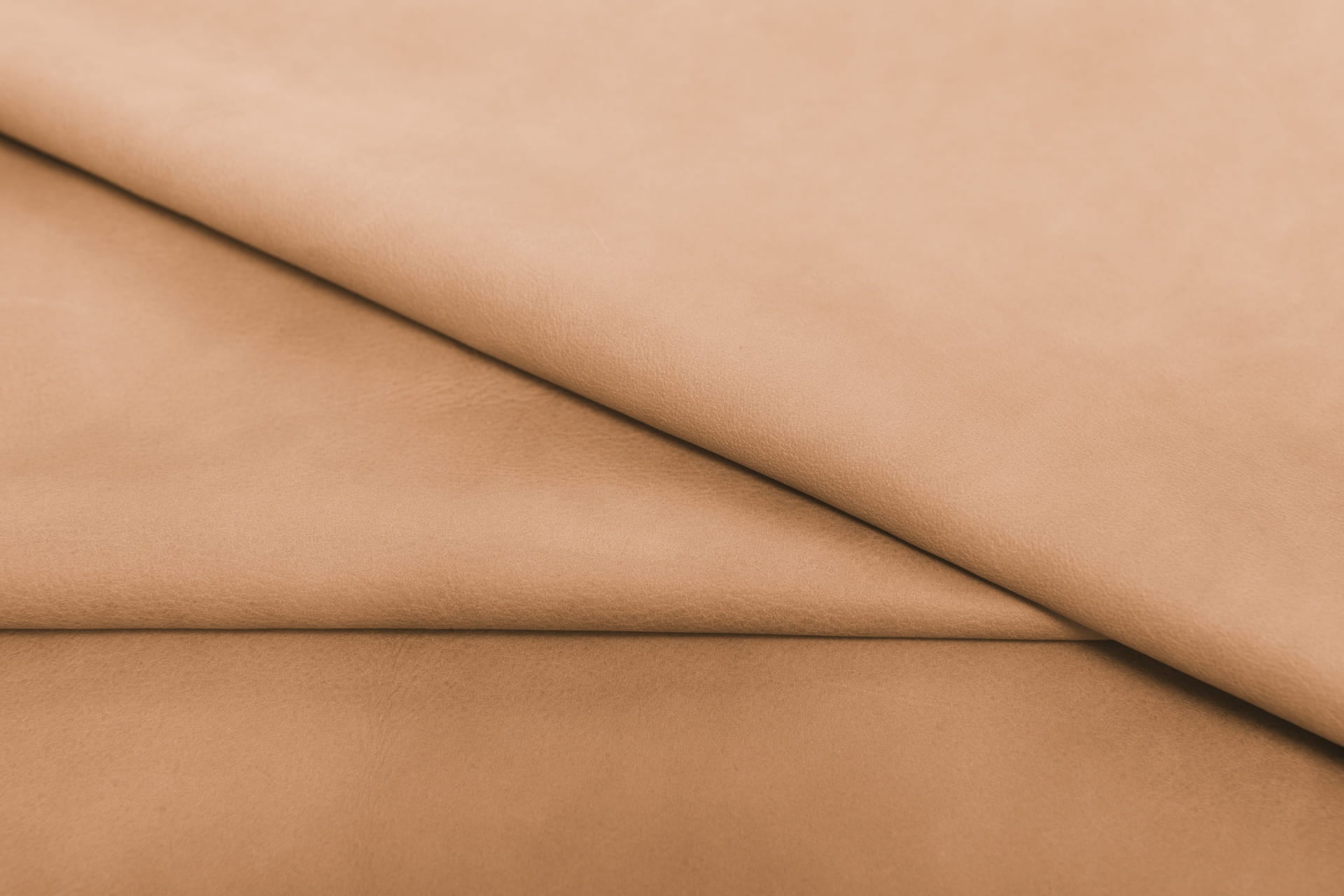 Aniline-dyed and vacuum-dried for a smooth grain appearance, finished with a light wax coating to enhance its touch and lustre while offering light natural protection for this nubuck-effect leather. This natural leather will develop marks with use.