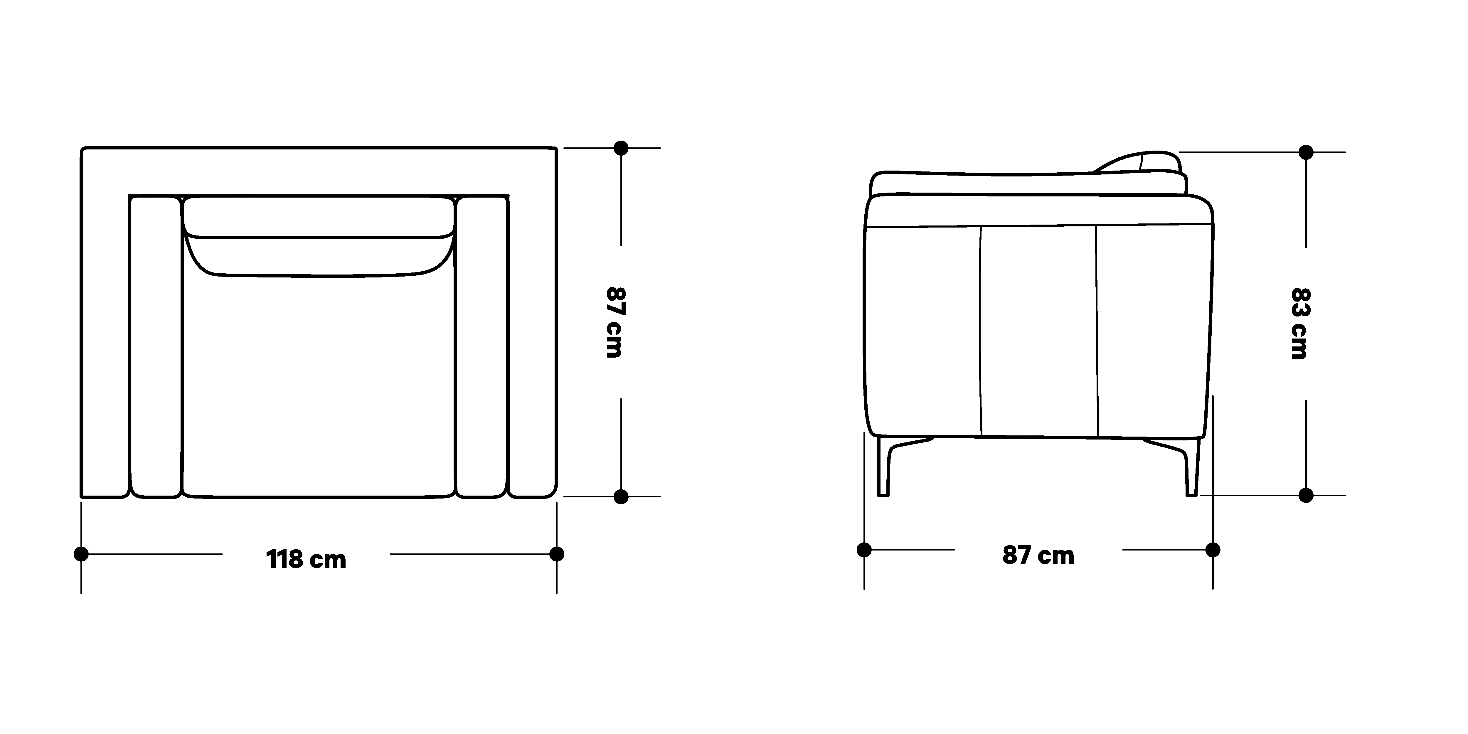 - Fixed back cushions with soft and supporting fibre padding.