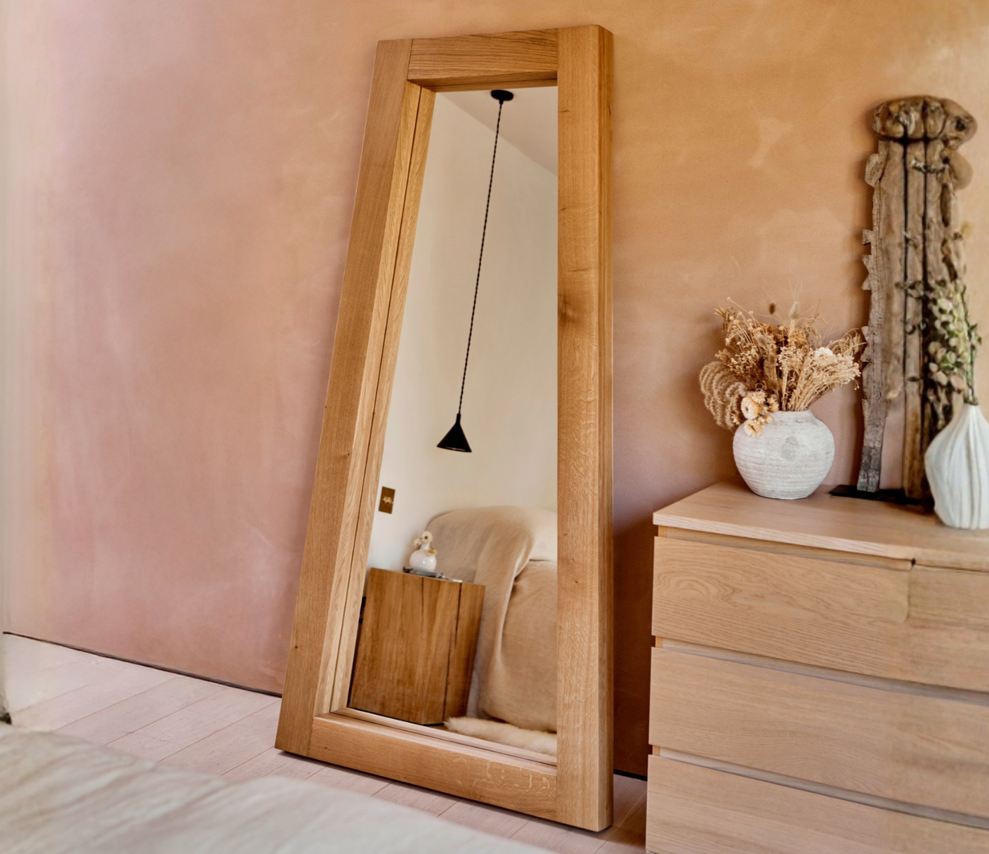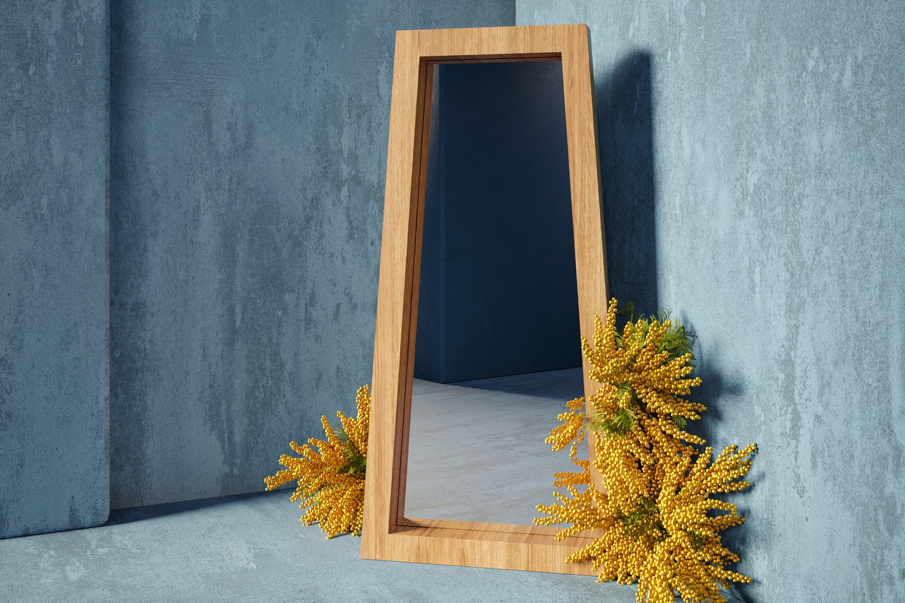 Shar is for the transcendent. Reaching up in triangular form, this versatile wall mirror provides a sense of balance and harmony to align your space. Position it in a sunny spot to welcome light into your space as it drenches your room in pure golden energy.
