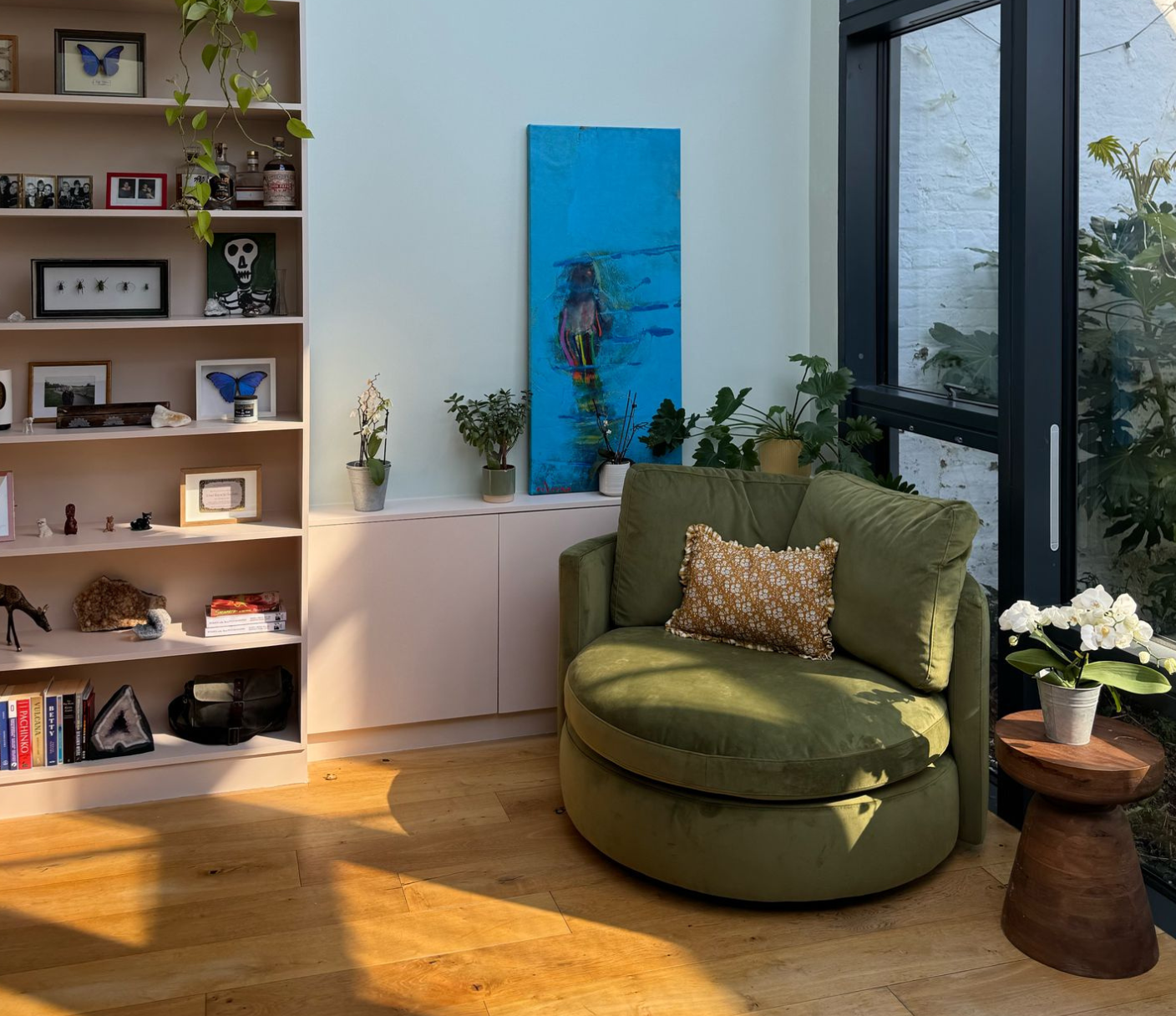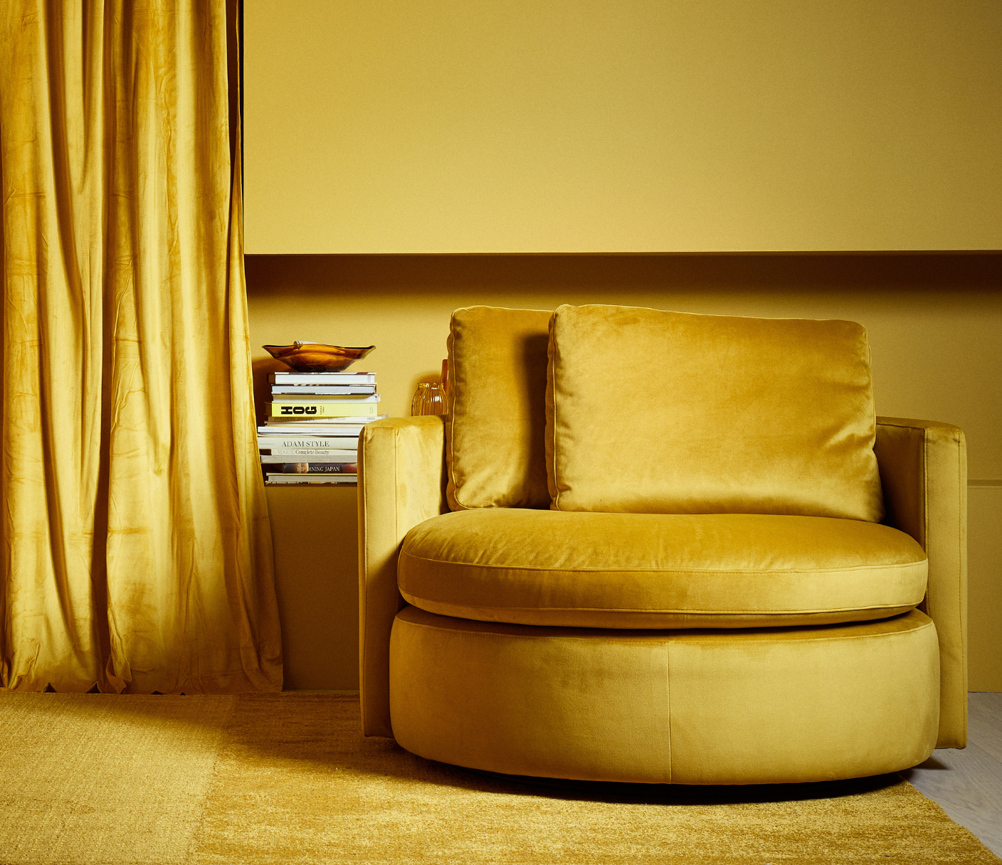 Moroder is for hedonists. The snuggest of swivel chairs, this is a super soft smorgasbord of a statement. Feathers and foam in striking colours, it is a riot of velvet and your very own throne of games.